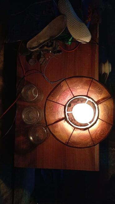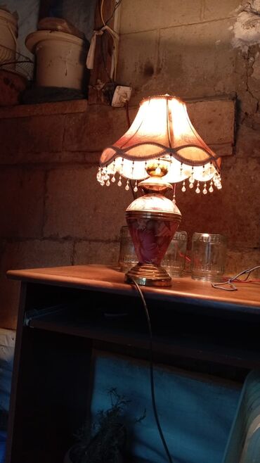 Masaüstü çıraq, xaricdən alınıb, üzərinin naxışı əl işidir. İşləkdir