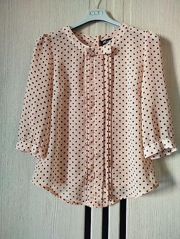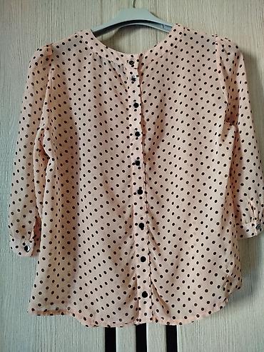 Qadın bluzası – açıq pudra rəngi, qara xırda xallı naxış.