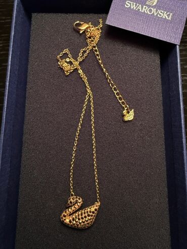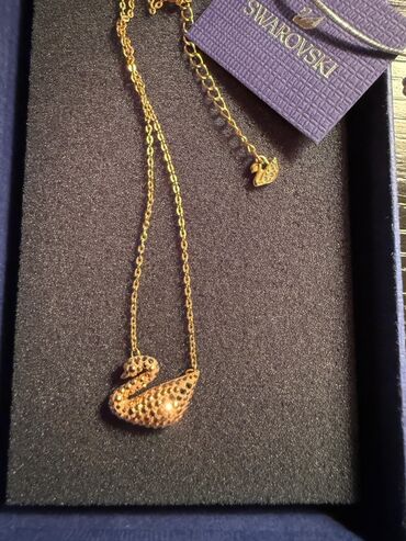 Swarovski brendinə məxsus qızılı rəngli zəncirdən və tək şəffaf kristaldan ibarət boyunbağı. Boyunbağı zərif dizaynı ilə gündəlik istifadə və xüsusi günlər üçün uyğundur. Məhsul Swarovski loqosu ol...