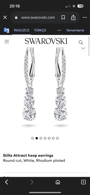 Sırğa, Swarovski, Gümüş, 925 g, Ünvandan götürmə