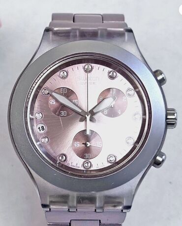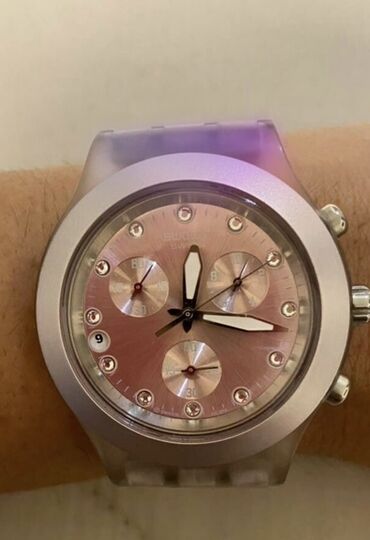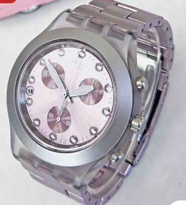 Orijinal Swatch Irony Chrono – çəhrayı xronoqraf qol saatı