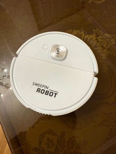 Kompakt ölçüsü sayəsində mebel altına rahat girir, gündəlik süpürmə işini avtomatlaşdırır. Üzərində “SWEEPIN ROBOT” loqosu. Made in China.