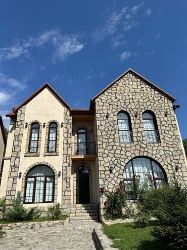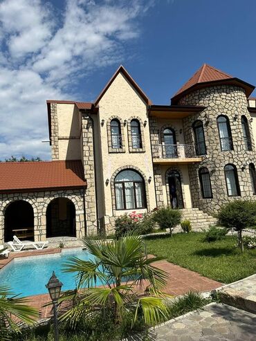 Kiraye 4 mertebeli 400 kv. 9 sot olan villa. 2 qaraj,qaraulcu ucun ayrica otaq,besedka,manqal,basseyn ,meyveli bag,4 sanitar qovshaqi,2 metbex.su ishiq ,gaz inet.tv.daimi 5 kondisioner.