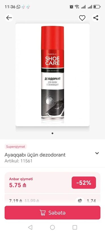 - Ekrandakı məlumat: Anbar qiyməti 5.75 ₼, endirim -52%