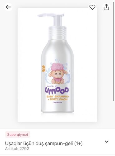 Faberlic brendlərindən ailə və ev üçün geniş bakım dəstləri və ətirlər Məhsulların nümunələri: - Şampunlar: Love Moments, Botanica (ağ yonca və nar), Umo Kids uşaq şampunu - Bədən üçün gel və duş ...