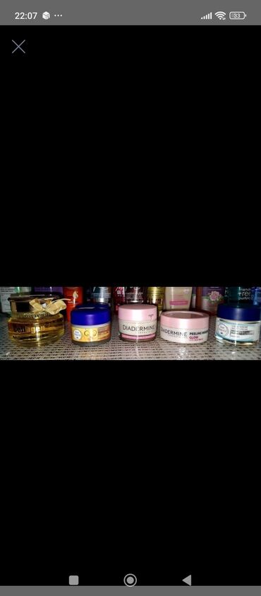 - Diadermine kremləri: qidalandırıcı, gecə/gündüz, Peeling Mask Glow.