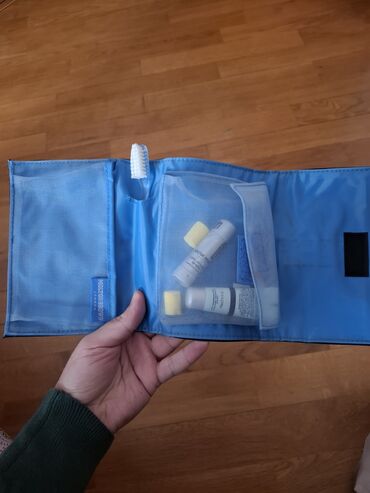 - Daxilində səyahət ölçülü məhsullar: diş pastası və diş fırçası, kiçik şampun/losyon butulkaları, dırnaq dırnaqtəmizləyəni və ya manikür aksessuarları üçün nazik cib, kiçik süngər və digər mini şüşələr.