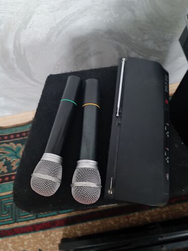 - 2 ədəd simsiz əl mikrofonu + qəbuledici modul (teleskopik antena, iki kanal göstəricisi və idarə düymələri)