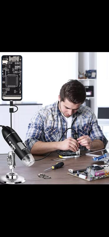CD Manitorlu elektron mikroskop Böyütmə: 600x - 135 AZN Böyütmə: 1200x - 200 AZN Yüksək keyfiyyət ve praktik mehsul Telefon ustalari, kompüter ustalari ve s. üçün mikrosxemleri , platalari müşahidə...