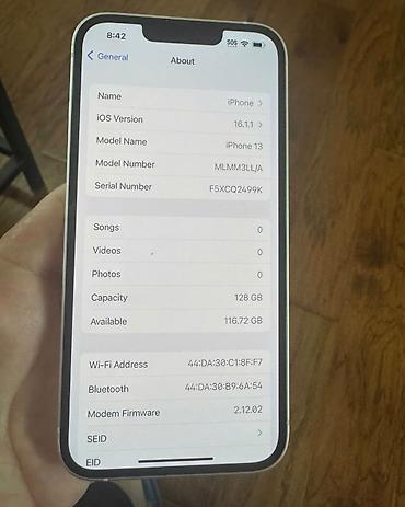 IPhone 13, 128 GB Telefon şəxsi istifadə olub, ilk sahibiyem səliqəli vəziyyətdədir. • Ekran və arxa şüşə təmizdir, çat/qırıq yoxdur • Korpusda normal istifadə izləri • Ustada açılmayıb • Fac...