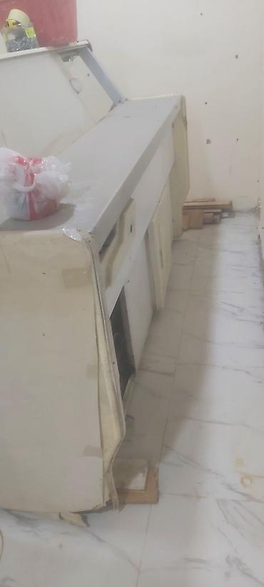 - Məhsul: Kommersiya tipli soyuducu vitrin (önü qabarıq şüşəli, xidmətçi tərəfdən açılan), üstü iş masası üçün düz səthli; yanaşı olaraq sürüşkən şüşə qapaqlı üfüqi dondurucu sandıq.