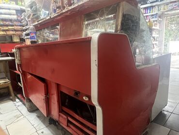 - Ön hissə: Eni geniş şüşə vitrin; üst rəfdə şokolad, konfet, batonlar üçün düz səth; içəridə məhsul yerləşdirmək üçün çoxsəviyyəli rəflər.