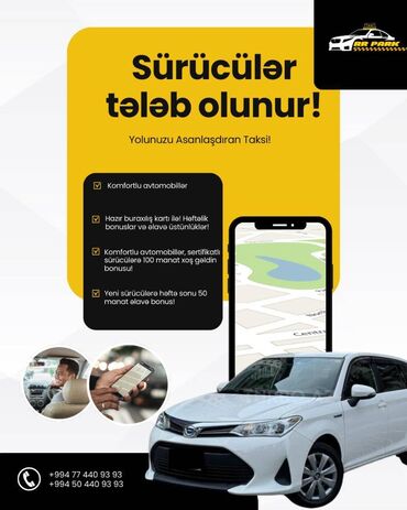 Taksi sürücüsü tələb olunur, Nəqliyyat təmin edilir, Həftəlik ödəniş, 6 ildən artıq təcrübə