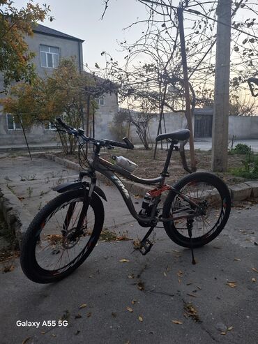 Dağ velosipedi – full suspension - Rəng: boz-göy gövdə, qırmızı arxa üçbucaq və detallar - Tam asqı sistemi: ön amortizator və mərkəzdə arxa şok absorber - Disk əyləcləri (mexaniki), ön və arxa - ...