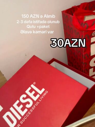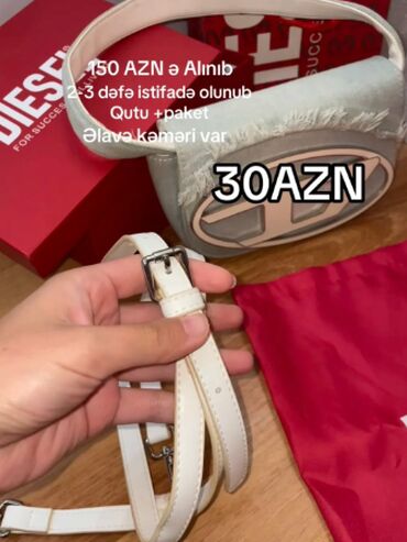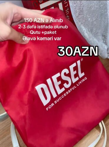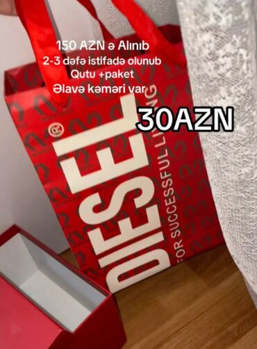 Tam idel veziyyetde yeni kimi Diesel canta. Premiumdur. Kemer, Qutu, Cuxol, Paket daxil hamisi 20 azn. OZ QIYMETI 150DIR. 1-2 defe goturulub. Real alicilar elaqe saxlasin.