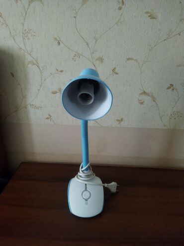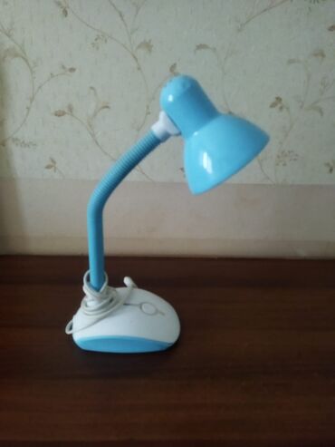 Masaüstü lampa. Həm masanın kənarına bərkidilə bilər həm də yumru dayağın üzərində dura bilər. Tək-tək alınsa 20 manat, üçü biryerdə - ikisi qara, biri ağ - 50 manat.