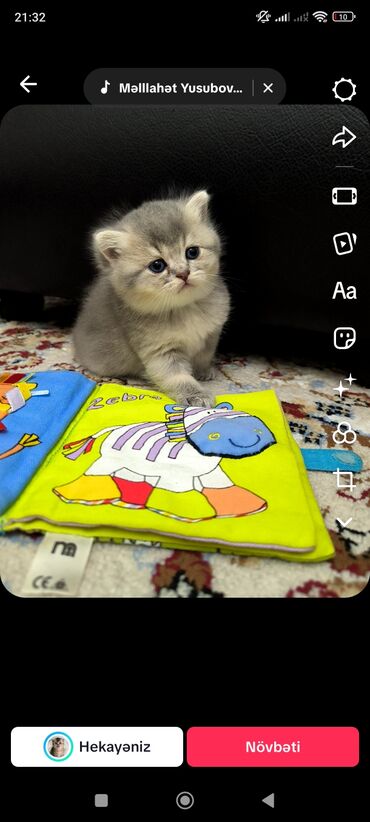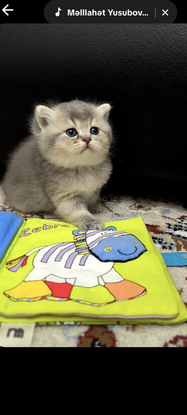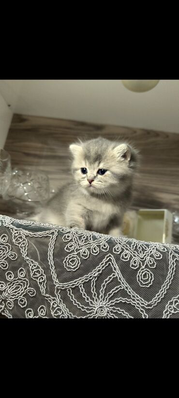 3 dənə erkey balalar idi. İkisi satıldı. Bir bu şirin qalıb. Rəngli gözdü. Öz pişiyimin balasıdır. 25 sentyabr doğulub. Tam sağlam oynayan pişikdir. Ata silver şınşıla ana skotiş foldur. Təmiz ci...