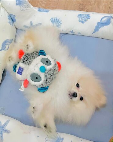 Cins: Pomeranian Spitz (boo tipli mini) Rəng: krem/ağ Say: bir neçə balaca Xüsusiyyətlər: - Çox kompakt, yumşaq “fluffy” tüklü, yuvarlaq üz quruluşu - Ev şəraitinə uyğun, sakit və mehriban xasiyyə...