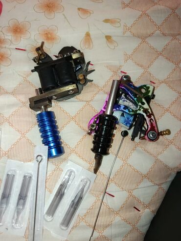 - 2 ədəd tattoo aparatı: biri klassik coil maşın, digəri rəngli karkaslı maşın
