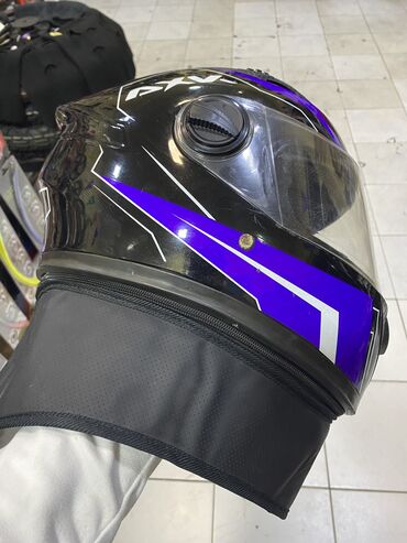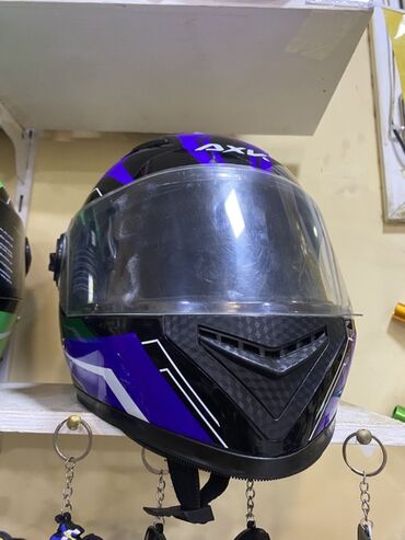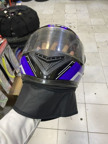 Motosiklet dəbilqəsi – qapalı (full-face) model - Rəng: metalik tünd mavi - Korpus: aerodinamik, parlaq örtüklü sərt qabıq - Vizor: şəffaf, geniş bucaqlı; yan tərəfində sürətli açılıb-bağlanma mex...