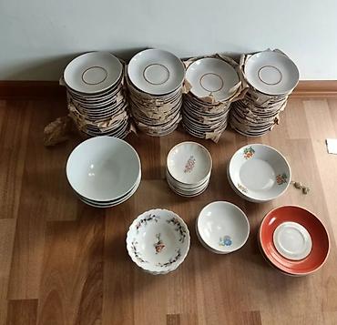 27 ədəd sovuz tarelkası 12 ədəd dolma tarelkası 23 ədəd aş tarelkası 6 ədəd balaca sovuz tarelkası 5 ədəd şüşə salat qabı Adres: Suraxanı ray.