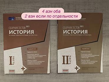 - 2021 “История” test topluları, Kurikulum üzrə, I və II hissə (Государственный экзаменационный центр). Mövzular üzrə tapşırıqlar; 2019-cu ilin qəbul və buraxılış imtahanlarında istifadə olunmuş tapşırıqlara izahlar; mətn əsasında nümunə tapşırıqlar; düzgün cavablar. Hər iki hissə bir yerdə: 4 AZN, ayrı-ayrılıqda: 2 AZN (şəkildə göstərildiyi kimi).