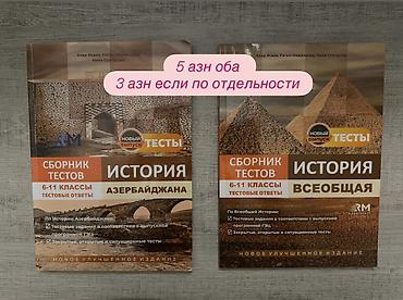 - 6–11-ci siniflər üçün “История Азербайджана” və “История Всеобщая” test topluları (RM). GİM-in buraxılış proqramına uyğun test tapşırıqları; qapalı, açıq və situasiya tipli testlər; testlərin cavabları. Birlikdə: 5 AZN, ayrı-ayrılıqda: 3 AZN (şəkildə göstərildiyi kimi).