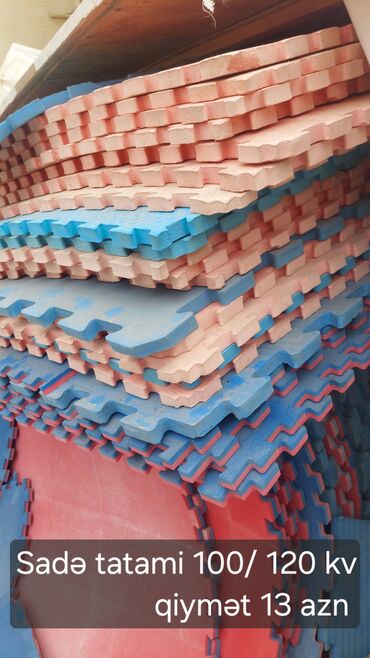 - Sadə tatami: 100–120 kv sahə üçün, mavi/qırmızı çalarlı pazlı plakalar. Qiymət: 13 AZN (şəkildə göstərilib).