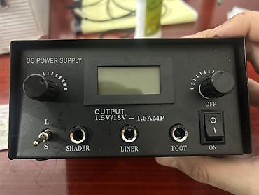 - Rəqəmsal göstəricili DC power supply: çıxış 1.5V–18V, 1.5A; ON/OFF düyməsi, gərginlik tənzimləyiciləri; L/S keçidi; SHADER, LINER və FOOT çıxış portları
