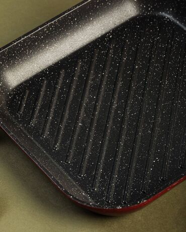 Xorvatiya iatehsalı Plamen Zavodu Döküm kvadrat qril tava - Material: ağır döküm (döküm dəmir), daxildə qara emal örtük - Forma: kvadrat, yumşaq künclü - İç səth: dərin qril cızığları – ət, balıq,...