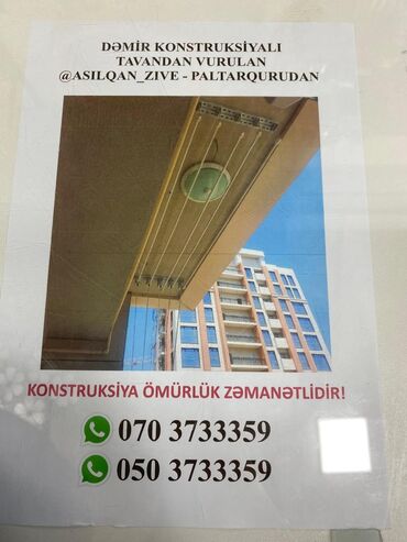 Tavandan quraşdırılan paltarqurudan – dəmir konstruksiyalı asılqan sistemi