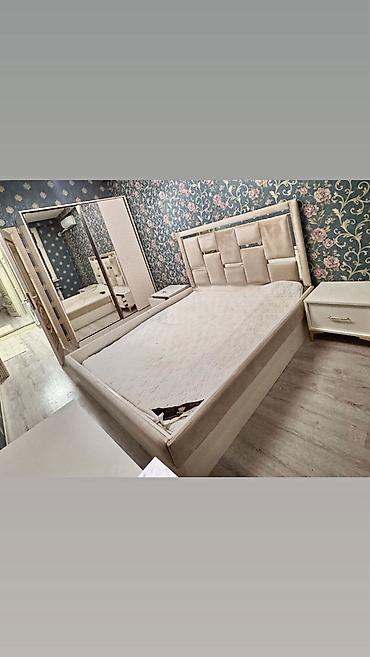 Yataq otağı dəsti – Aeron_mebel - 3qapılı şkaf, güzgülü h200 en120 d47 - Geniş çarpayı 200×160 - 2 ədəd tumba 40×40 - Komod + güzgü h175 en 80 d40 Reng secimleri movcuddur Dizayn: ağ korpus, yığcam...