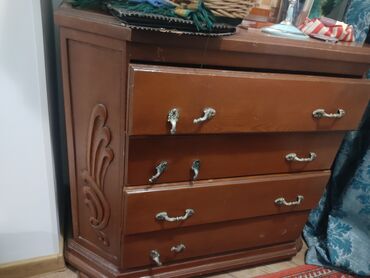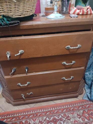 10%Palıd ağacından komod – 4 çekməcəli, klassik üslub, əl işləməsidir.