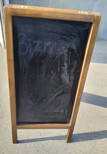Taxta çərçivəli ikiüzlü qara lövhə (A-frame). - Material: tünd rəngdə laklanmış taxta çərçivə, menteşəli konstruksiya - Yazı səthi: hər iki tərəfi təbaşir və ya marker üçün uyğun qara lövhə - Tip...