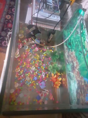 Akvaryum dəsti – şirin su üçün - Şüşə akvaryum, üst qapaqlı - Daxili filtr nasosu - Su qızdırıcısı (termometr şkalalı) - LED/işıqlandırma sistemi qapaqda - Hava nasosu və hava daşları - Dekorativ ...