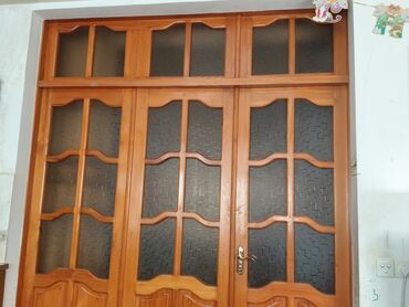 Taxta şüşəli qapılar dəsti 5 ədədi hamsı birlikdə 55m - Material: təbii ağac (klassik taxta teksturası, lak örtüklü). - Dizayn: yuxarı hissədə şəbəkəli vitraj tərzində 6 bölməli şüşə, aşağı hissəd...