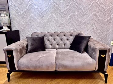 Türkiyə istehsalı Xüsusi dizaynlı klassik üslubda iki nəfərlik divan - Rəng: tünd boz (antrasit) - Material: yumşaq məxmər parça, toxunuşda həssas və parlaq effektli - Üslub: Chesterfield ilhamlı ...