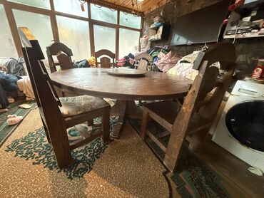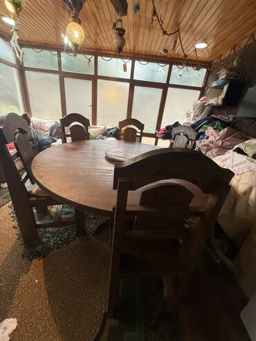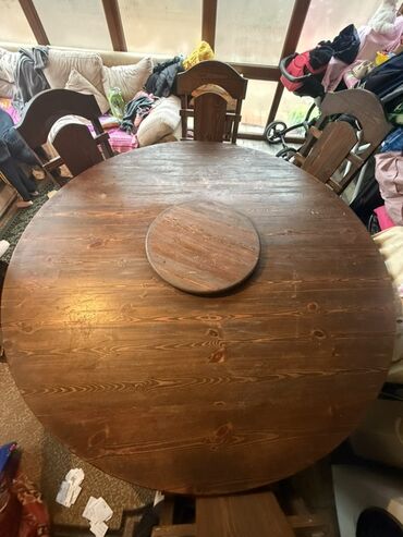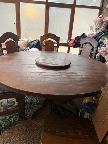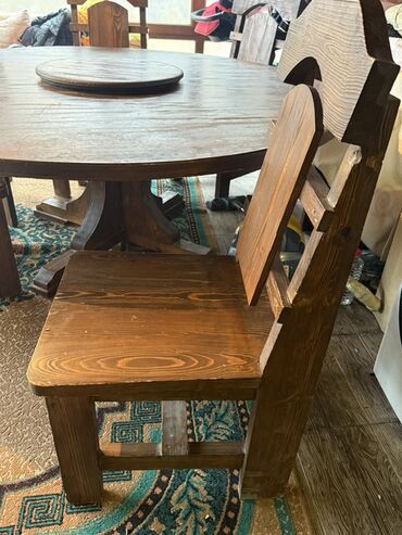 Möhkəm taxta quruluş, rahat oturacaq arxalıqları ilə eyni üslubda dəst. Fırlanan mərkəz hissə süfrə servisində rahatlıq yaradır. Rustik interyerlərlə çox uyğunlaşır.