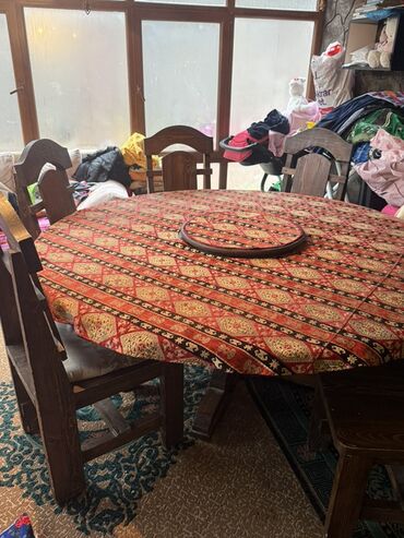 - Ölçü (təxmini, şəkillərə əsasən): böyük diametrli stol, 6-8 nəfər üçün rahat