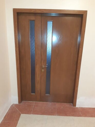 - Klassik üslubda, qəhvəyi ağac teksturalı daxili qapılar