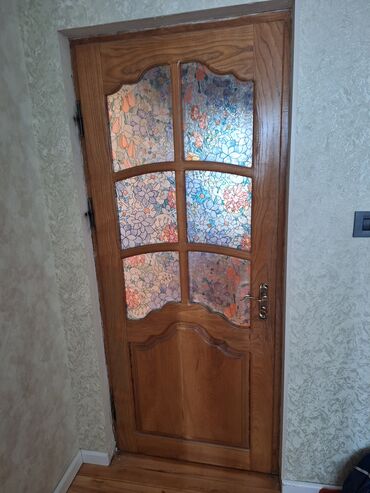 - Şüşəli variant: 4 bölməli dekorativ rəngli şüşə (vitraj üslubunda) ilə, alt hissə tam taxta panel.