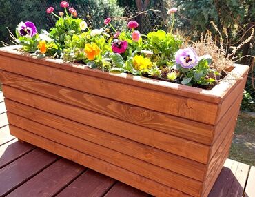 Açıq məkana uyğun taxta çiçək qutuları - Material: təbii şüşə kimi