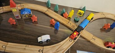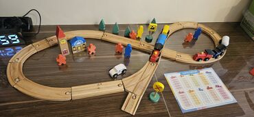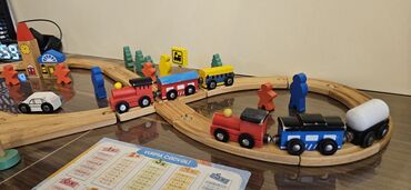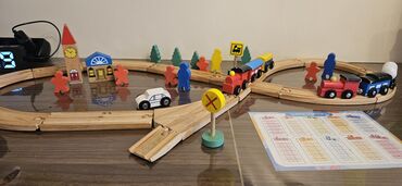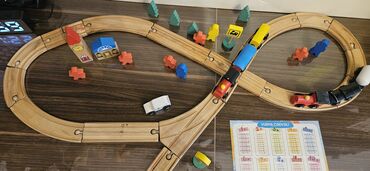 - Təbii ağacdan hazırlanmış rels dəsti: düz, əyri və kəsişmə hissələri ilə müxtəlif marşrutlar (8-lik forma daxil).
