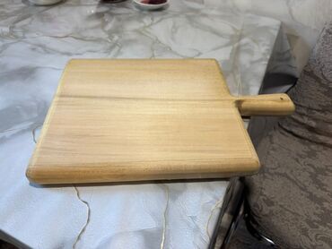 Taxta doğrama taxtası - Material: təbii ağac - Forma: kvadrat gövdə, inteqrə olunmuş tutacaqlı - Kənarlar yumru işlənib, səth hamar cilalanıb - Tutacaq hissəsində asmaq üçün deşik mövcuddur - Çoxf...