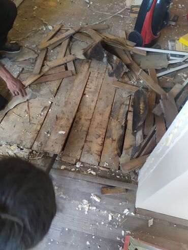 eve ait işler gorulur.munasib qiymete.vatsabla elaqe saxlayin.Taxta döşəmə yığımı və təmiri xidməti - Köhnə döşəmələrin sökülməsi, torpaq əsasın təmizlənməsi və səviyyələnməsi - Taxta şüaların (la...
