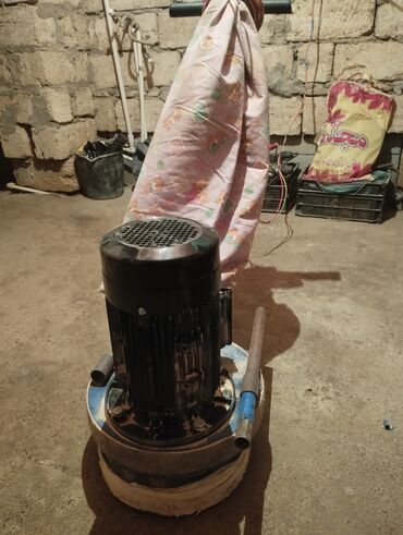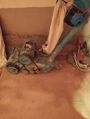- Disk tipli parket cilalama maşını: güclü elektrik mühərriki, dairəvi iş diski, toz toplayıcı kisə üçün çıxış; idarəetmə üçün yandan metal tutacaqlar; alt hissə cilalama/yastıq diski ilə.
