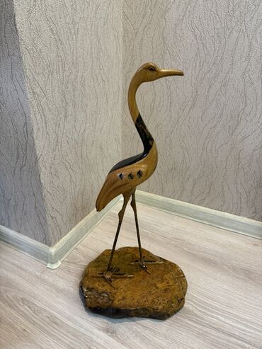 - Xüsusiyyətlər: təbii ağacın damarları aydın görünür, hər bucaqdan heykəlin silueti yığcam və zərifdir; yerə zərər verməməsi üçün bazanın altı hamar işlənib