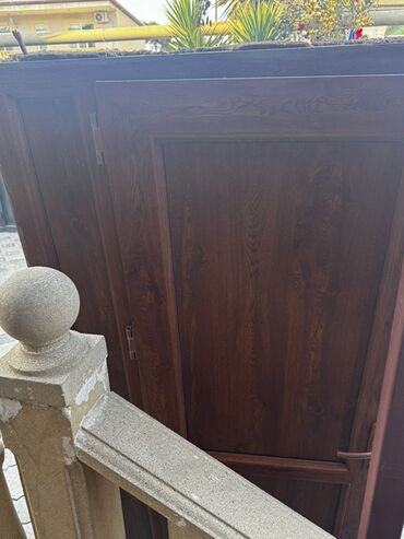 Metall qapı – ağac naxışlı, tünd qəhvəyi rəng. - Material: polad korpus, dekorativ MDF/laminat örtük - Ölçü: standart giriş qapısı ölçülərinə uyğun (təxmini 90×200 sm ətrafı – fotoya əsasən) - Diza...