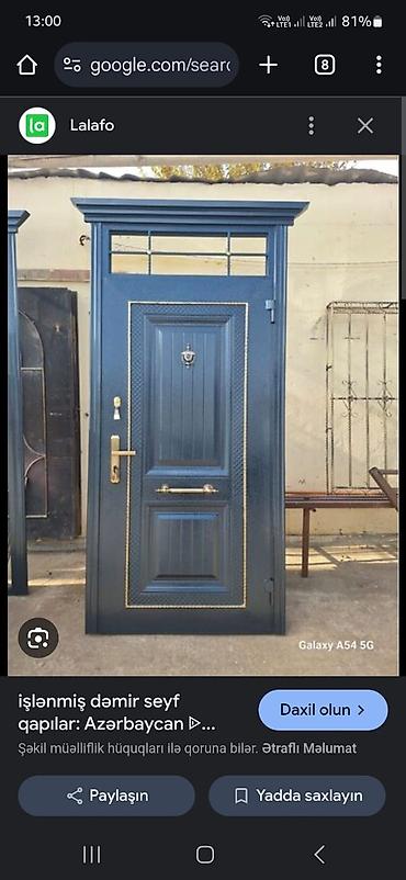 Salam .180azn baslayan qiymetlerle isdediyiniz novde ve olçude seyf qapilar elde ede bilersiz. qapilar peşekar usdalar terefinden hazirlanir. qapilara soyuq havalarda paslanmasin deye. (ANTI PA...