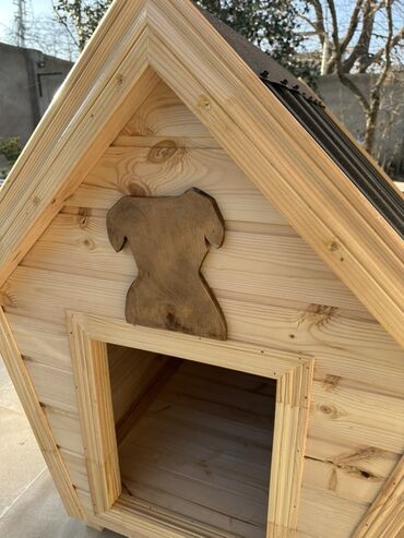 Taxta it evi/volyerlər - Material: Təbii taxta lövhələr, dekorativ oyma haşiyələr və möhkəm künc bərkidiciləri - Dam: İkiqat yamaclı, su keçirməyən örtüklü - Korpus: Qalın taxta panellər, sabit da...